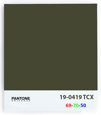 Pantone 19-0419 TCX (RGB: 69,70,50)